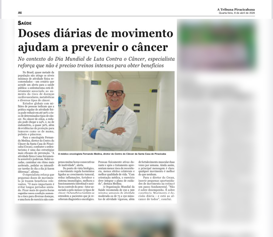 O Centro do Câncer da Santa Casa de Piracicaba (CECAN) recebe, no próximo dia 24 de abril, uma ação especial de doação de perucas promovida pela ONG Cabelegria. A iniciativa será realizada das 9h às 15h e é voltada a pacientes em tratamento oncológico, proporcionando mais do que um acessório: um gesto de acolhimento, fortalecimento emocional e resgate da autoestima.