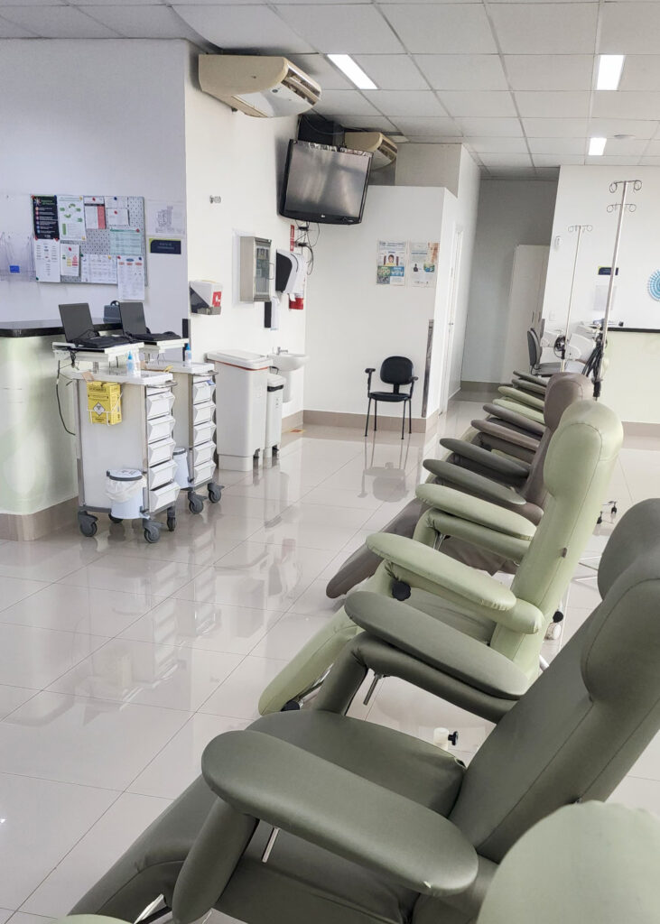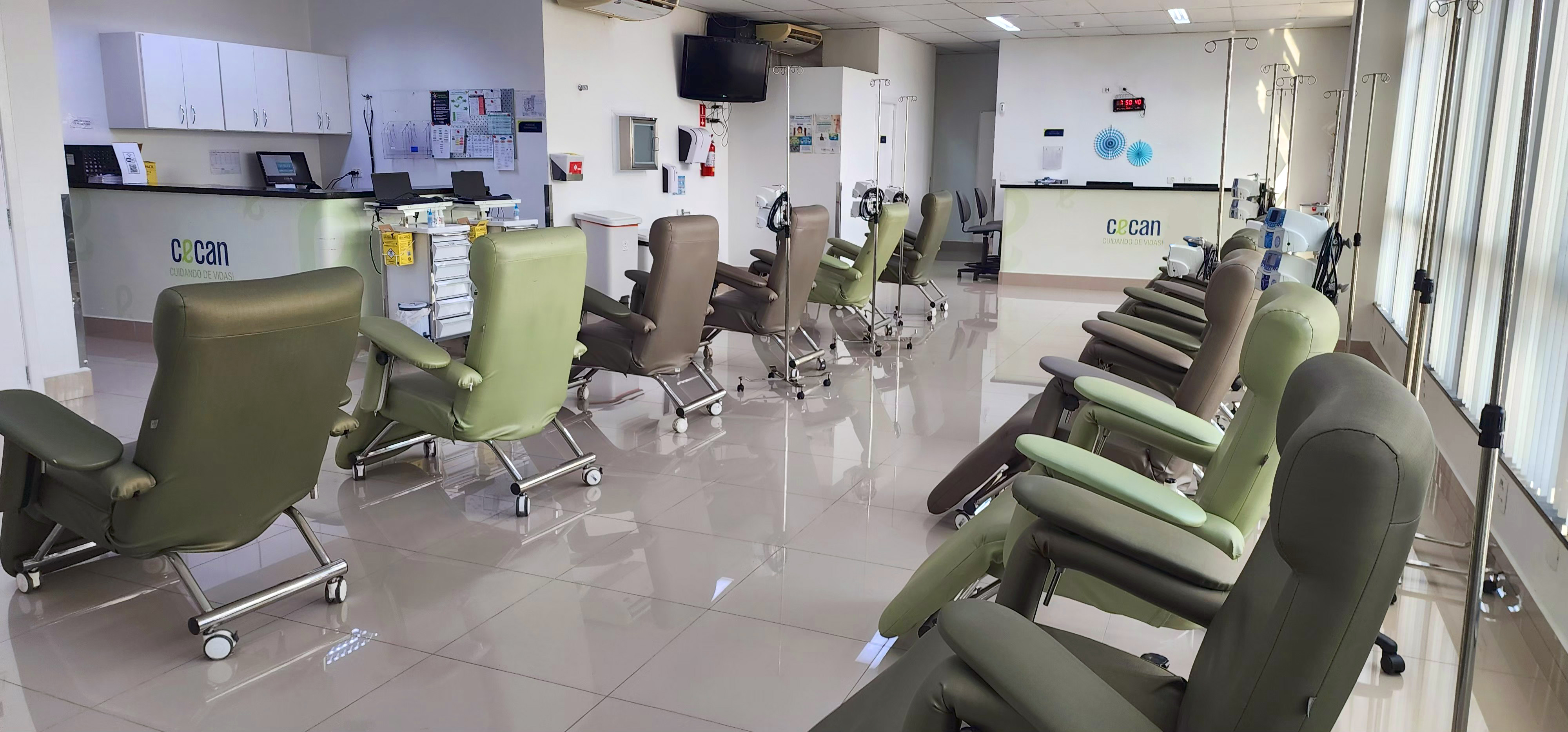No CECAN, esse processo ocorre em sala especial, com 27 leitos; dois deles reservados a pacientes que necessitam de longa permanência para receber os quimioterápicos. Eles são rigorosamente preparados na Farmácia do CECAN com base na prescrição médica e, depois, administradas pela equipe de enfermagem de maneira segura e eficaz.