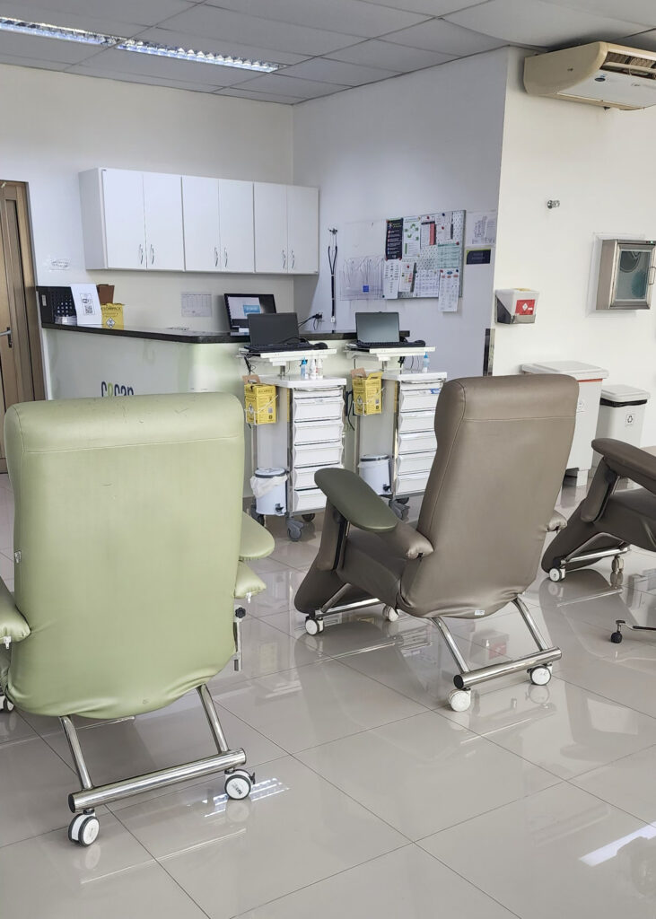 No CECAN, esse processo ocorre em sala especial, com 27 leitos; dois deles reservados a pacientes que necessitam de longa permanência para receber os quimioterápicos. Esses medicamentos são rigorosamente preparados na Farmácia do CECAN com base na prescrição médica e, depois, administrados pela equipe de enfermagem de maneira segura e eficaz.