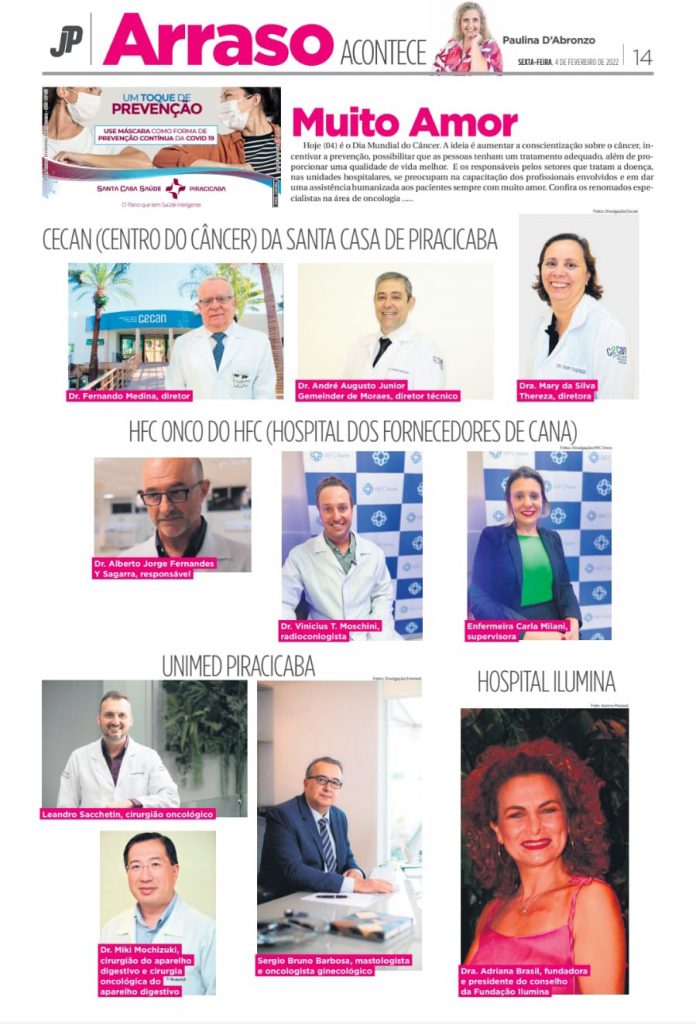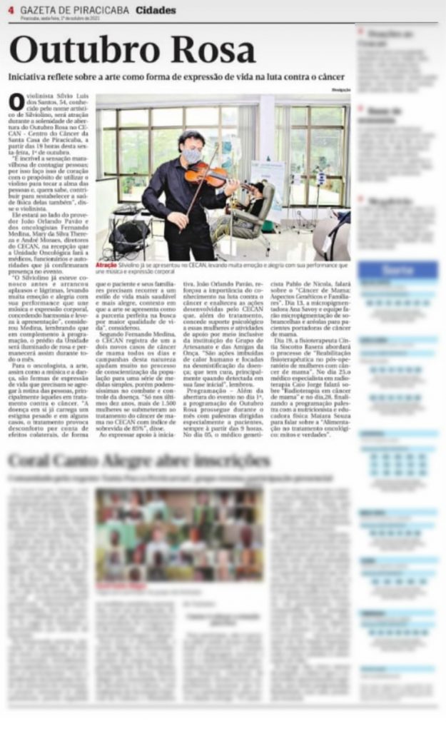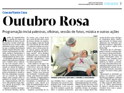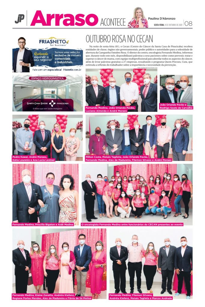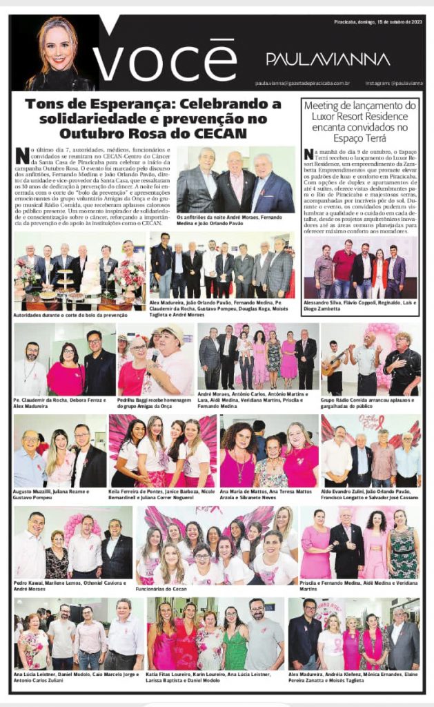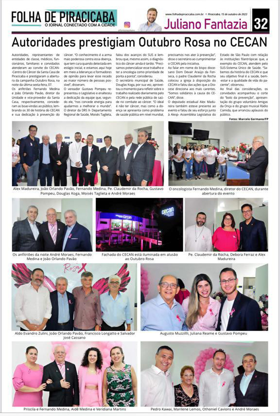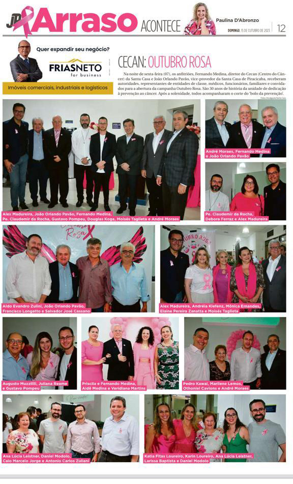 Durante o mês de outubro, o prédio do CECAN- Centro do Câncer da Santa Casa de Piracicaba fica iluminado de rosa para ajudar a chamar a atenção do mundo para a prevenção do câncer de mama, o segundo mais comum entre as mulheres no Brasil e no mundo, compreendendo 26% dos casos.